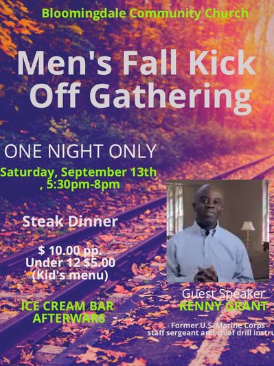 This fall, we invite you to come together for an evening of fellwoship, encouragement, and renewal. The night will begin with a hearty dinner. Following the meal, we'll hear from our guest speaker, Kenny Grant. Come ready to be encouraged and to refocus! CLICK THE IMAGE TO REGISTER
